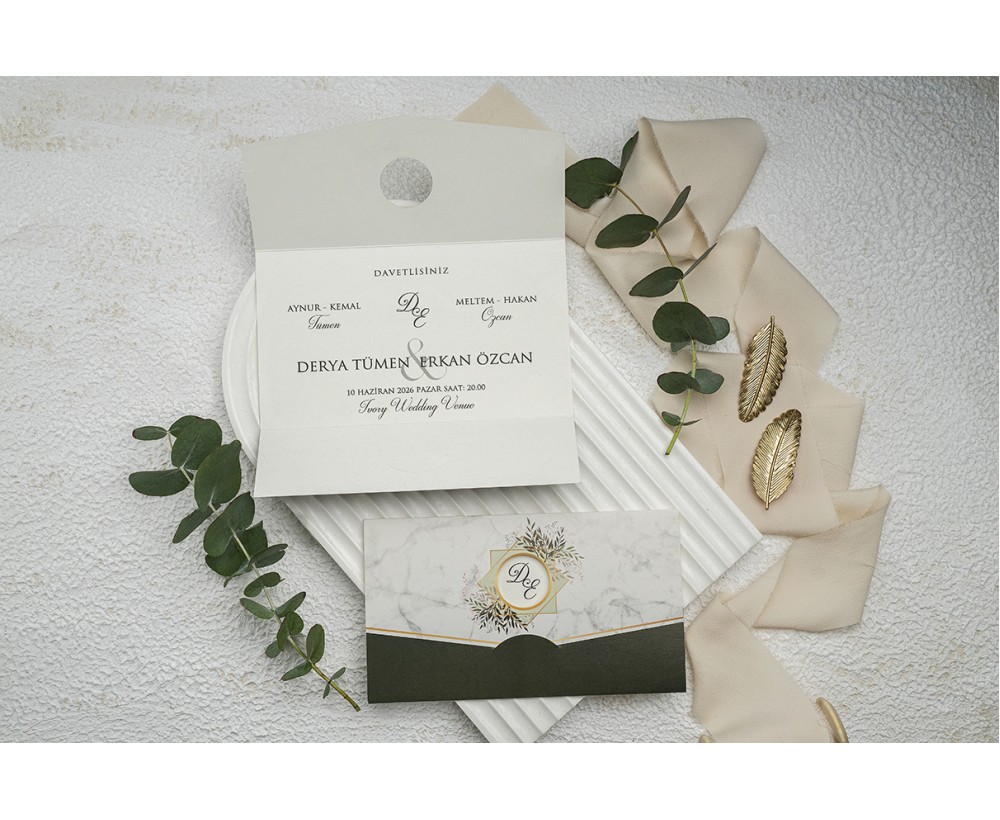 Ekonomik model zarfsız katlamalı tek parça mermer desen alt kısım teşil derya ve erkan davetiyesi